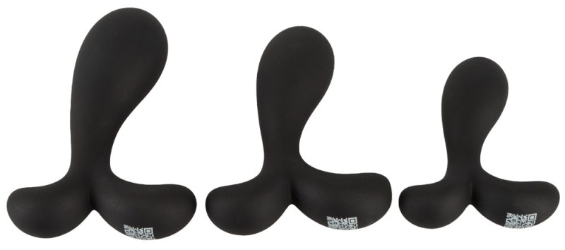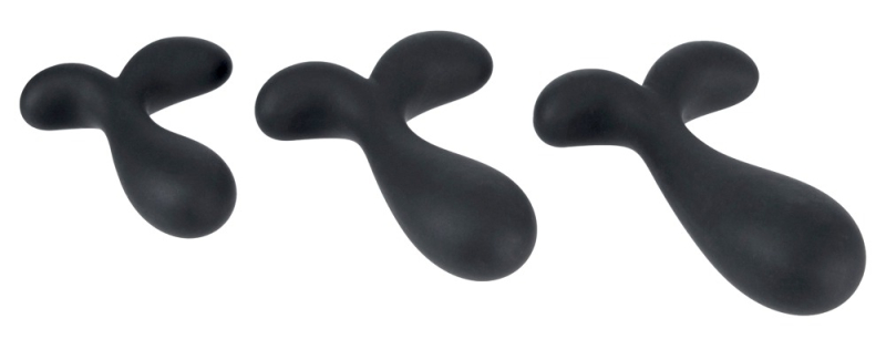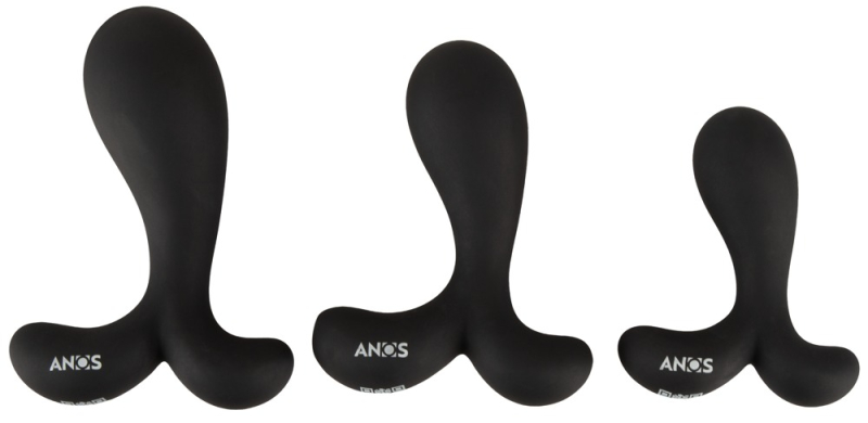 Butt Plug Training Set With Slightly Curved Tips von ANOS mit 3 Silikon-Analplugs in verschiedenen Größen und Gewichten. Perfekt für rektale Stimulation und Dehntraining. Jeder glatte Plug mit leicht gebogener, ausgeformter Spitze, um insbesondere die Prostata (P-Punkt) gezielt zu stimulieren. Der 2-armige Stopper sorgt dabei für analsicheren Sitz und Spaß sowie bequemes Herausziehen. Alle 3 Analplugs sind aus seidig-softem Silikon gefertigt und in der Verjüngung flexibel. Für leichtes Einführen, optimale Anpassung und höchsten Komfort beim Anal-Training!