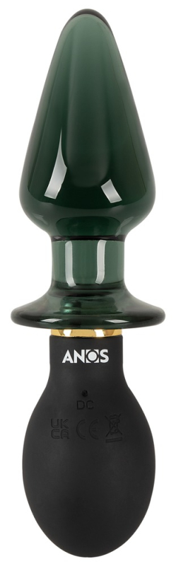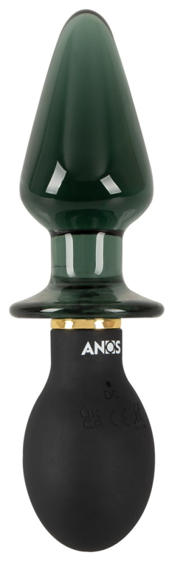 Formschöner Double-ended Butt Plug with Vibration von ANOS im hochwertigen Material-Mix, der alle Vorteile eines Silikon- und eines Glas-Vibroplugs in sich vereint. Beidseitig anal bespielbar: Eine Seite mit abgerundetem seidig softem Silikon-Plug, andere Seite mit massivem glatten, konisch zulaufendem Glas-Plug. In der verjüngten Mitte mit breitem Stopper, der ein Hineinrutschen der Plugs sicher verhindert.