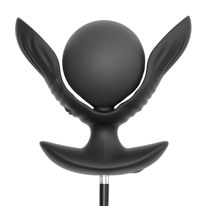 RC Inflatable Expander Plug with Vibration von ANOS für lustvolles Dehnen und intensive Stimulation im Hinterstübchen. Der 2-armige Plug wird mit seinen zusammengedrückten Vibro-Spitzen eingeführt. Er überrascht mit einem aufpumpbaren Mittelball, um die geriffelten Plug-Arme dann weit auseinander zu spreizen. Mit der griffigen Ballpumpe wird dieser bequem auf Wunschgröße gebracht – so breitet sich der Plug im Analkanal lustvoll aus. Dazu sorgen 2 leise, dennoch leistungsstarke Motoren für prickelnde Vibrationen in den Plug-Armen, die richtig tief gehen.