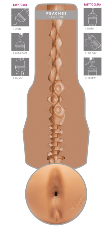 Realistisches Analvergnügen mit grandiosem Engegefühl! Griffiger Masturbator Autumn Falls Peaches von Fleshlight in diskreter Taschenlampen-Optik mit original abgeformter Anus-Öffnung von Erotikstar Autumn Falls. Und auch das sehr abwechslungsreich strukturierte Innenleben mit verschiedenen Durchmessern kommt dem engen Analkanal von Autumn ganz nah und sorgt für eine intensive, orgasmuswirksame Massage beim Handjob. Die Innensleeve aus hautähnlichem super softem Material ist neben der Öffnung mit einem Autogramm von Autumn versehen und lässt sich zur Reinigung leicht aus dem Masturbator entnehmen.