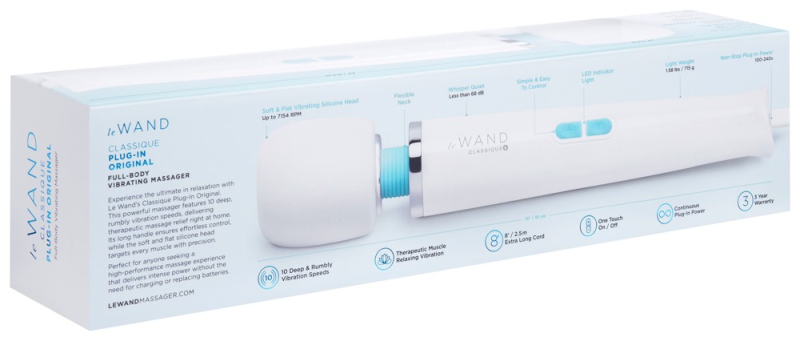 Das klassische Original präsentiert sich in strahlendem Weiß und begeistert mit ergonomischem Wand-Design – für optimalen Komfort beim Verwöhnen. Dank langem Griff und flexiblem Massagekopf werden alle Körperbereiche und äußeren Lustpunkte mühelos erreicht. Die samtweiche Soft Touch-Oberfläche gleitet angenehm über die Haut und schenkt ein luxuriöses Massageerlebnis.
