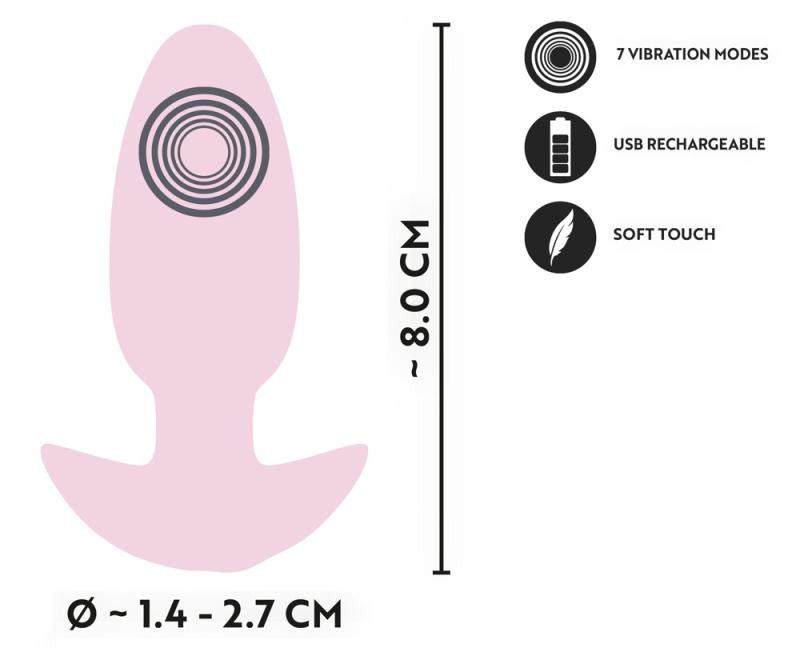 Der Vibrating Mini Butt Plug Rose von Cuties ist das freche Abenteuer für alle, die analen Genuss spielerisch entdecken möchten. Im federleichten Design mit schmaler Spitze gleitet der kompakte, seidig glatte Silikon-Plug wie von selbst und macht den Einstieg super einfach. 7 verspielte Vibrationsmodi sorgen für prickelnde Abwechslung und jede Menge Vergnügen. Einfach nur aufs Knöpfchen drücken!
