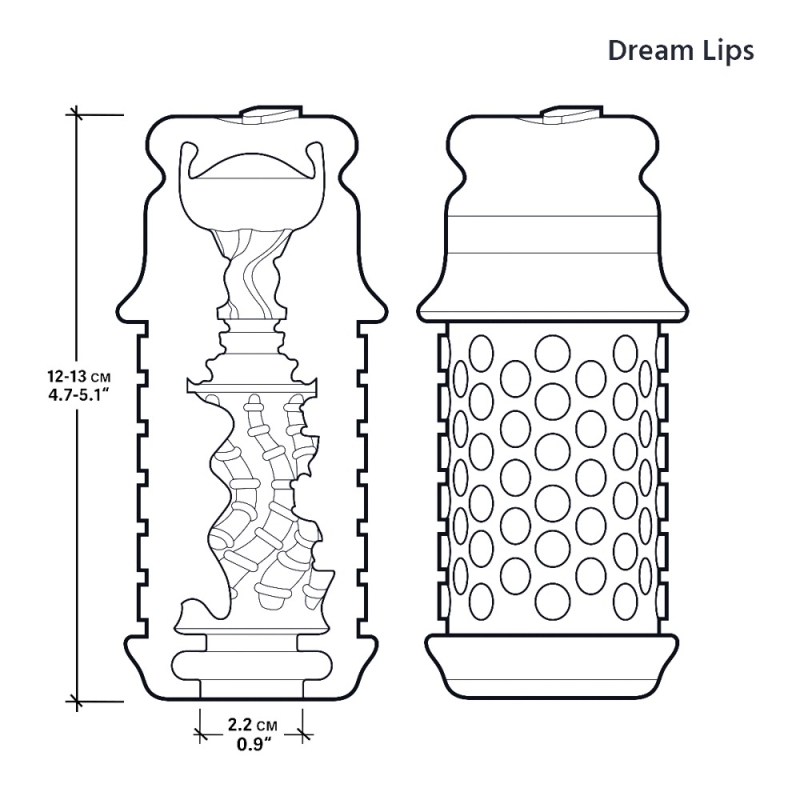 Seidig softe Dream Sleeve Lips von The Handy mit abwechslungsreicher Noppen-Stimulationsstruktur für die intensive Penismassage mit Blowjob-Feelings. Einseitig geschlossen, sehr elastisch – passt sich jedem Penis an. Wiederverwendbar, langlebig und leicht zu reinigen. 12 cm–13 cm lang, Innen-Ø 2,2 cm. TPE.