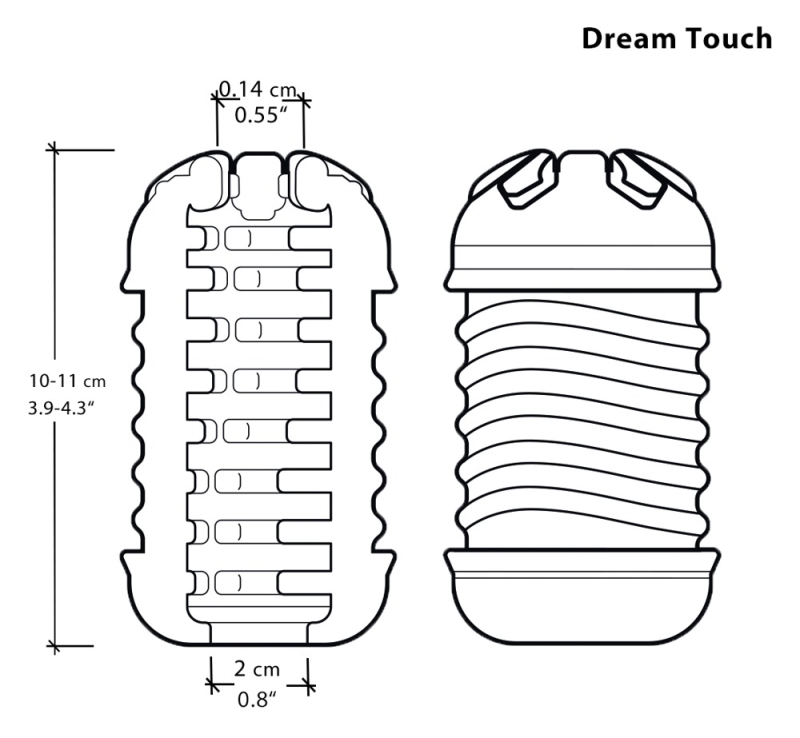 Seidig softe Dream Sleeve Touch von The Handy mit genoppt gerippter Stimulationsstruktur für die intensive Penismassage von der Eichel bis zur Wurzel. Beidseitig offen, sehr elastisch – passt sich jedem Penis an. Wiederverwendbar, langlebig und leicht zu reinigen. Lässt sich durch Umstülpen in Länge und Reizstruktur variieren. 10 cm–11 cm lang, Innen-Ø 2 cm. TPE.