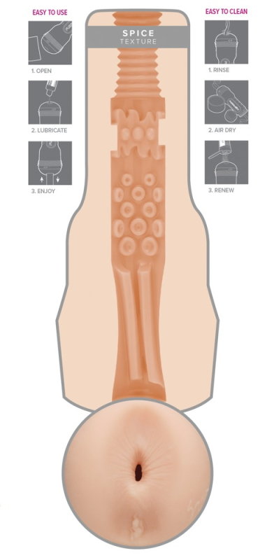 Für ein extrem enges und intensives Vergnügen! Masturbator Eva Lovia Spice von Fleshlight mit original abgeformter Anus-Öffnung von Erotikstar Eva Lovia. Und auch das sehr abwechslungsreich strukturierte Innenleben kommt dem extrem engen Analkanal von Eva ganz nah und sorgt für eine intensive, orgasmuswirksame Massage beim Handjob. Die Innensleeve aus hautähnlichem softem Superskin-Material ist neben der Öffnung mit einem Autogramm von Eva versehen und lässt sich zur Reinigung leicht aus der griffigen, diskreten Dose mit Deckel entnehmen.