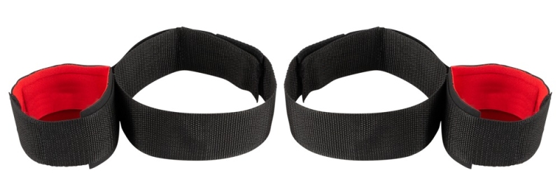 Oberschenkel-Manschetten mit fest angebrachten gepolsterten Handgelenk-Manschetten. Alle Manschetten durch Klettverschlüsse individuell verstellbar. Aus reißfester Kunstfaser. 100% Polyamid. 1 Paar.