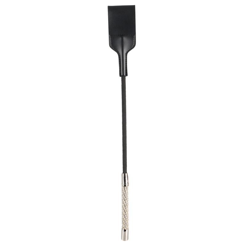 Für Hiebe mit Liebe mit dieser schwarzen Kunststoffgerte. Schlaufen-Spitze, umwebter Stab und Griff mit Strassbesatz. Gesamtlänge ca. 44 cm.