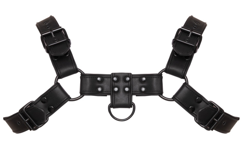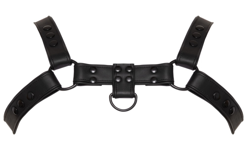 Aufregend anschmiegsames Brustharness von Svenjoyment aus stilvollem Lederimitat (vegan!) mit schwarzen Metalldetails. Solide gearbeitet mit stabilen Verbindungsringen sowie dekorativem Fesselring vorne und hinten. Mit markanten Schnallenverschlüssen ist das Harness schnell angelegt und passend verstellbar.