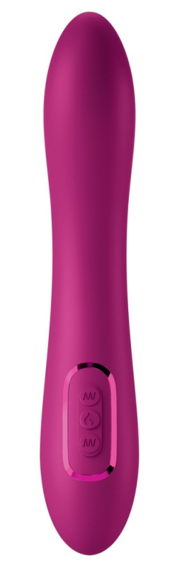 Vielseitiger Verwöhner! Ergonomisch geschwungener Vibrator Solis Form 6 von JimmyJane mit Wärmefunktion für vielseitiges Verwöhnen mit Komfort. 2 kraftvolle Motoren sitzen im Kopf und im Schaft: Die Kopfvibrationen gehen besonders tief (Bass), die Vibrationen im Schaft passen sich sanft an (Treble). Beides ist getrennt voneinander in jeweils 10 Modi bequem per Knopfdruck steuerbar. So kann mit dem soften Vibrokopf gezielt die vaginale G-Zone oder anale P-Zone, sowie äußere Lustpunkte, wie Klitoris, Hoden etc. verwöhnt werden.