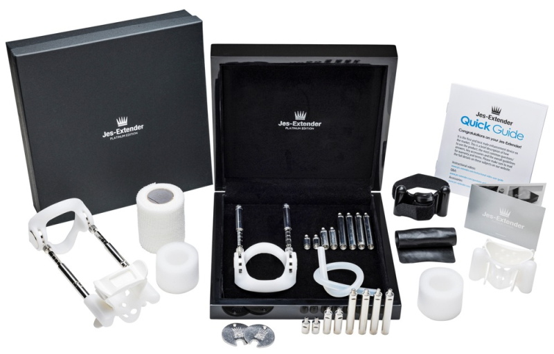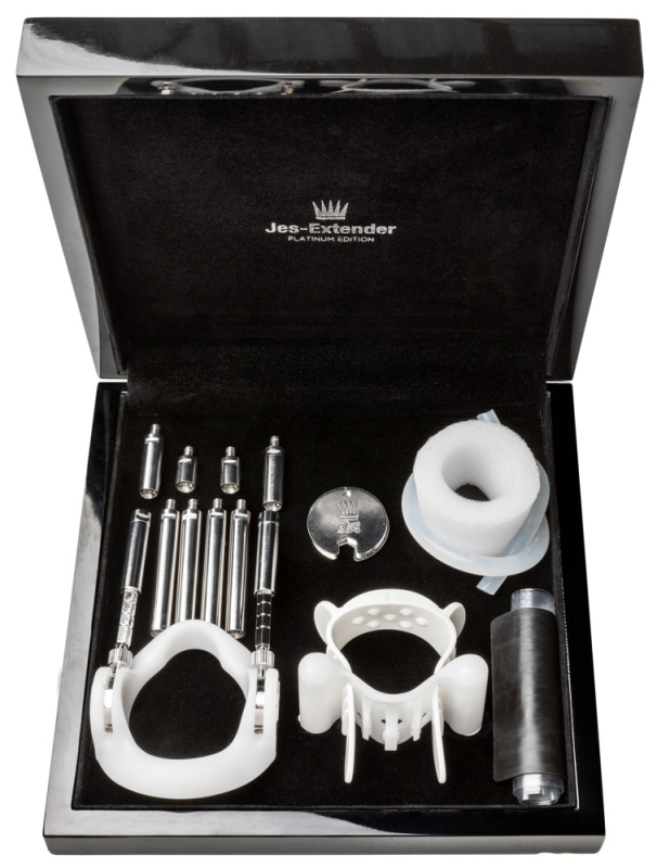 Die sanfte Art der Penisverlängerung mit 950er-Platinbeschichtung! Das hochwertige und wertvolle Penis-Expander-Set Platinum von Jes-Extender zur schmerzfreien Penisverlängerung mit dauerhaftem Erfolg. Funktioniert effektiv nach dem Prinzip der sanften permanenten Dehnung, um die Gewebezellenproduktion anzuregen. Die Zunahme wirkt sich sowohl auf die Penislänge als auch auf den -umfang aus. Das regelmäßige Tragen des Expanders kann auch die Erektions- und Orgasmusfähigkeit erhöhen. Er trägt sich bequem und diskret unter weiter Kleidung, behindert weder beim Sitzen noch bei Aktivitäten.