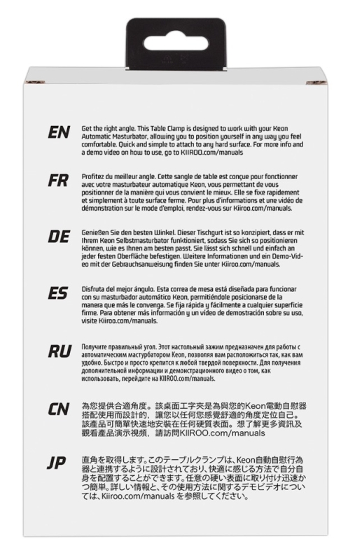 Zubehör für den Automatic Masturbator KEON von Kiiroo! Die praktische Tischhalterung KEON Table Clamp von Kiiroo richtet den Automatic Masturbator KEON genau im richtigen Winkel aus für freihändigen Spaß beim Masturbieren. Schnell und einfach an jeder festen (Tisch-) Platte angebracht – der Automatic Masturbator KEON wird dann einfach nur eingeschoben und hält fest und sicher beim vollautomatischen Stoßvergnügen.