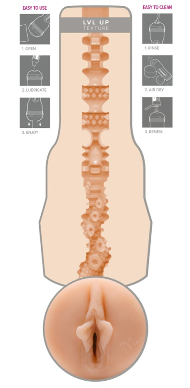 Für alle Fans von Mia Malkova! Masturbator Mia Malkova LVL up von Fleshlight in perlmuttfarbigen Gehäuse. Mit Orginalabdruck der Vagina von Erotikstar Mia Malkova. Im Inneren des engen, dehnbaren Lustkanals sorgen unterschiedlich große Noppen und Rillenstrukturen für intensive Stimulationen. Mit Schutzkappe und Autogramm des Stars neben der Vagina-Öffnung. Der Masturbator aus hautähnlichem SuperSkin-Material ist zur leichten Reinigung aus der Dose herausnehmbar.