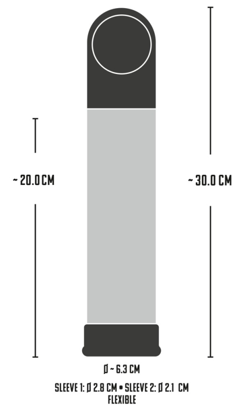 Im transparenten Zylinder mit Messskala (cm) wird schnell und bequem der saugende Unterdruck erzeugt. Der Penis kann auf Höchstmaß und -form anschwellen. Inklusive sind 2 seidig softe Silikon-Manschetten mit verschiedenen Durchmessern für eine perfekte Abdichtung des Zylinders zum Körper.