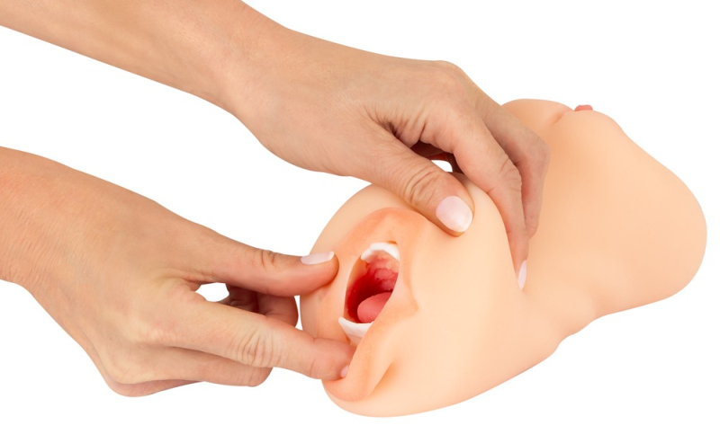 Der robuste Mouth, Vagina & Ass Masturbator von Nature Skin bietet gleich 3 Lustöffnungen für abwechslungsreichen, absolut gefühlsechten Spaß. Der beidseitig penetrierbare Masturbator verführt auf der einen Seite mit einem Deep Throat Mund und auf der anderen Seite mit einer Vagina und einem Anus. Aus softem Nature Skin gefertigt, sieht alles nicht nur sehr realistisch aus, es fühlt sich auch so streichelweich naturgetreu an. Jedes kleinste Detail ist lebensecht ausgearbeitet: Der sinnliche Mund mit Zunge, die Vagina mit zarten Vulvenlippen und der Anus mit enger Rosette. Beim Vergnügen passt sich das elastische hautähnliche Material optimal Penis und Bewegungen an. Für Feelings wie beim besten Sex!