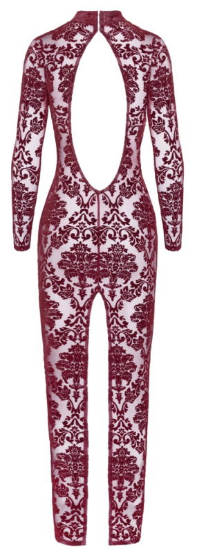 Tailliertes, knöchellanges Langarm-Kleid Kink Royal von Noir in atemberaubender burgundroter Transparenz mit samtigen Flockprint-Ornamenten. Rundum elastisch und weich anschmiegsam für hohen Trage- und Bewegungskomfort. Im Rücken mit großzügigem Ausschnitt, eleganter Stehkragen mit Häkchenverschluss im Nacken. Der extrahohe Gehschlitz hinten im hautengen Kleid gewährleistet optimale Bewegungsfreiheit und setzt verführerisch in Szene.