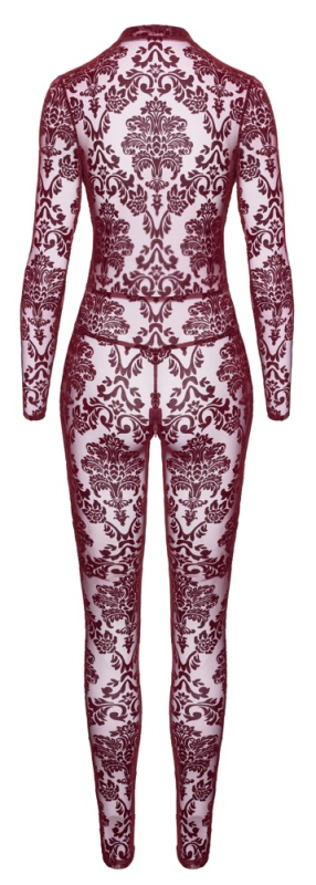 Samtige Transparenz für Diven der Sinnlichkeit! Hautenger Langarm-Overall Kink Royal von Noir in atemberaubender burgundroter Transparenz mit samtigen Flockprint-Ornamenten. Rundum elastisch und weich anschmiegsam für hohen Trage- und Bewegungskomfort. Extra tief dekolletiert und mit diskretem Reißverschluss im Schritt.