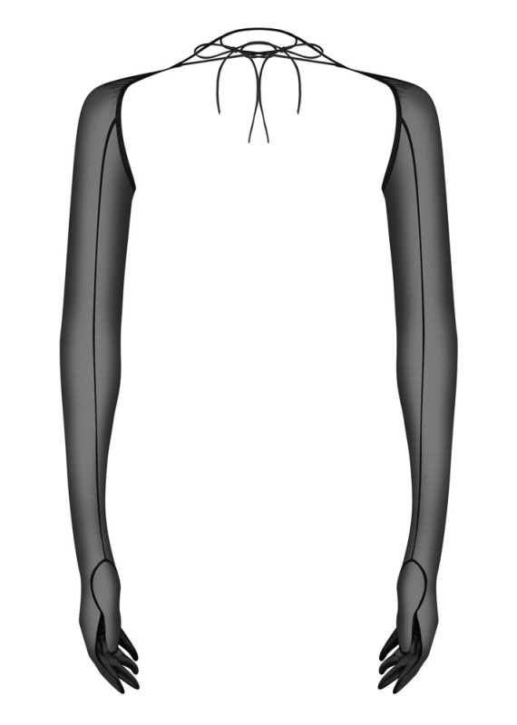 Das gewisse Extra! Extralange Handschuhe Euphori von Obsessive in schwarzer Powernet-Transparenz. Rundum elastisch und weich anschmiegsam wie eine zweite Haut. Reichen bis zu den Schultern und lassen sich für rutschfesten Halt mit ihren Bändern im Nacken oder an Träger binden. Perfekt kombinierbar mit anderen Dessous und als besonderes Extra zur Abendgarderobe.