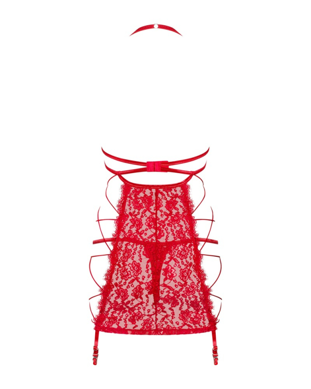 Schauen Sie sich dieses kleine Wunder an. Das Rediosa Hemd ist unser schöner Vorschlag für Ihren nächsten besonderen Abend zu zweit! Das schöne Muster seiner Spitze zieht die Blicke auf sich und regt die Gedanken an. Dank der verführerischen Träger und der offenen Cups sieht alles... einfach wunderbar aus! Alle Details: - produkt beinhaltet ein gepolstertes Hemd und einen sexy Tanga - hübsches Hemdchen aus sehr schönem, rotem Stoff - offene Cups mit einem Metallring zwischen den Brüsten verziert - verstellbarer Schulterriemen - mehrstufiger Verschluss - wunderschön durchscheinende Spitze - fantastisches Design - locker verschlungene Träger an den Seiten - verstellbare Strumpfhalter - strümpfe nicht enthalten - weiches Material (90% Polyamid, 10% Elasthan) 90% Polyamid, 10% Elasthan