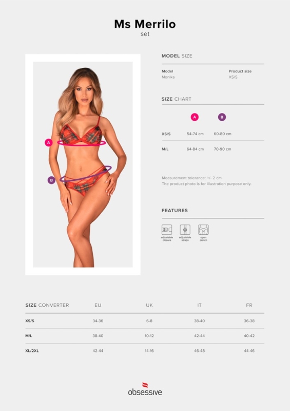 Nicht nur für weihnachtliche Verführungen! Dessous-Set Ms. Merrilo von Obsessive bestehend aus BH und Slip ouvert. Aus feinem Karo-Stretchtüll mit weißen Schneeflocken. Rundum weich und elastisch für hohen Tragekomfort. BH mit kleinem Stern-Schmuckdetail zwischen den soften Cups. Die Träger sind passend verstellbar. Riostring mit stylischem Riemchenbund und kleinem weißen Plüsch-Bommel über dem Po. Im Schritt verführerisch offen.