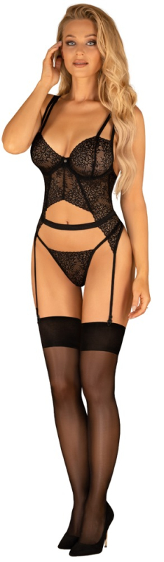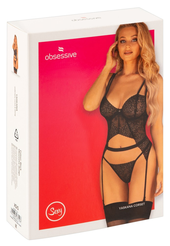 Komfortabler Verführ-Style! Strapshemd und String im Set Yaskana von Obsessive aus feiner Spitze. Weich und elastisch für höchsten Tragekomfort. In raffinierter bauchfreier Schnittführung mit Taillenband. Cups auf Formbügel gearbeitet für perfekten Halt und Sitz. Aufregende Rückansicht mit variabler Schnürung. Die Träger und Strumpfhalter sind passend verstellbar. Der schlichte schöne Spitzenstring komplettiert diesen verführerischen Look.