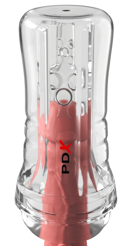 Transparenter Masturbator ViewTube Plus See-Thru EZ-Grip Stroker Clear von PDX Elite in griffigem Klarsicht-Gehäuse mit Schutzkappe. In der ultraweichen Sleeve wird der Penis von intensiven Strukturen rundherum massiert. Für rhythmische Handjobs, bei denen jede:r zuschauen kann! Für zusätzliche Sauggefühle wie beim besten Blowjob sorgt die Vakuumöffnung am Ende des Masturbators. Mit einem Finger wird einfach durch Öffnen und Verschließen der Öffnung die Saugkraft variiert (Suction Control).