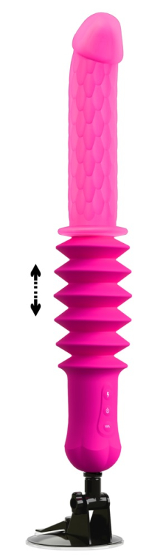Energiegeladener Stoßvibrator RC Warming Fucking Machine von You2Toys im reizstarken Riffel-Look mit ausgeprägter Eichel. Mit seinem abnehmbaren und im 90°-Winkel verstellbaren Saugfuß haftet er auf jeder glatten Oberfläche fest und sicher für freihändiges Stoß-Vergnügen. Der prächtige Vibrator stößt mit seiner Vibro-Eichel immer wieder kraftvoll zu und verwöhnt zusätzlich mit wohliger Wärme. Tiefgehende, gefühlsechte Intensiv-Stimulation ganz bequem per Fernbedienung!