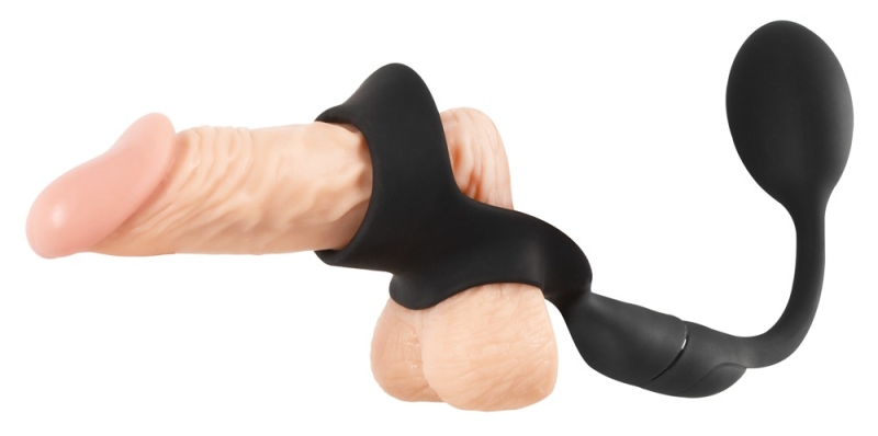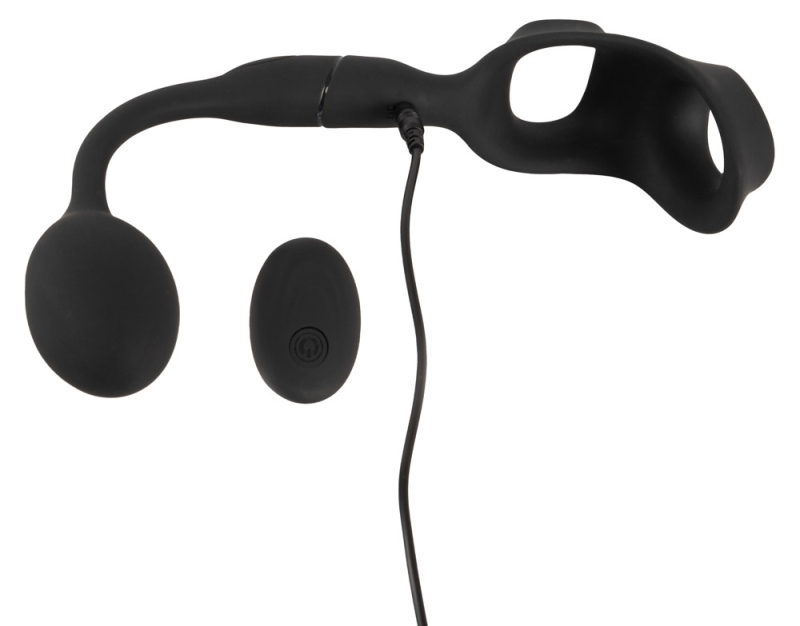 Der Cock Ring with RC Butt Plug von Rebel ist ein kombinierter Penis-/Hodenring mit fest arretiertem Vibro-Analplug, der über die Fernbedienung bequem steuerbar ist – mit einer Reichweite von bis zu 6 Metern auch vom Partner. Die kombinierten Ringe nehmen Penis und Hoden fest in den Griff und können seine Erektion dank Blutstau-Effekt wirkungsvoll unterstützen. Gleichzeitig sorgt der eingeführte Vibro-Analplug mit seinem speziellen Kugel-Design und 10 abwechslungsreichen Vibrationsmodi für intensive Stimulationen im Hinterstübchen. Rundum aus Silikon gefertigt und mit Soft Touch Textur überzogen, sorgt dieses „Geschirr“ für ein angenehmes Haut- und Tragegefühl.