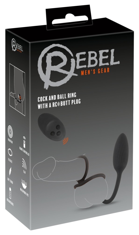 Der Cock and Ball Ring with a RC Butt Plug von Rebel ist ein kombinierter Penis-/Hodenring mit fest arretiertem Vibro-Analplug, der über die praktische Fernbedienung bequem steuerbar ist – mit einer Reichweite bis zu 15 Metern auch von dem/der Partner:in.