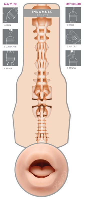 Griffiger Masturbator Riley Reid Insomnia (Mouth) von Fleshlight in diskreter Taschenlampen-Optik mit original abgeformter Mund-Öffnung von Erotikstar Riley Reid. Innen mit intensiven Strukturen für ein realistisches Deep-Throat-Vergnügen beim Handjob. Die Innensleeve aus hautähnlichem softem Superskin-Material ist neben der Mundöffnung mit einem Autogramm von Riley versehen und lässt sich zur Reinigung leicht aus dem Masturbator entnehmen.