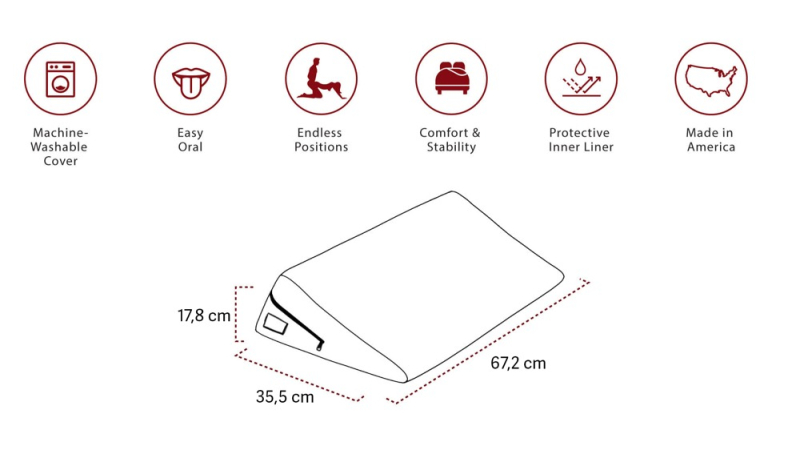 Das stylische Plus für Komfort-Sex! Ergonomisch optimal keilförmiges Liebeskissen Super Wedge von Liberator in extrabreiter Ausführung für noch mehr Komfort beim Sex. Das stylische Keilkissen positioniert bei Missionars- und Doggy-Stellungen Becken und Po im perfekten Winkel für tiefe intensive Penetrationen bis zum G-Punkt. Auch orale Spielarten werden durch bequemen Zugang zu den Intimregionen vereinfacht. Das feste Kissen sorgt dabei für die richtige Unterstützung und komfortable Befriedigung.