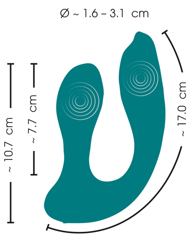2 leise Motoren sorgen diskret für 10 Vibrationsmodi in jedem Arm, um gleichzeitig innen und außen intensiv zu verwöhnen. Mit der praktischen Fernbedienung sind die vielseitigen Modi bequem steuerbar – auch vom Partner oder der Partnerin. Die Vibrationen können auch einfach per Knopfdruck direkt am Toy gesteuert werden.