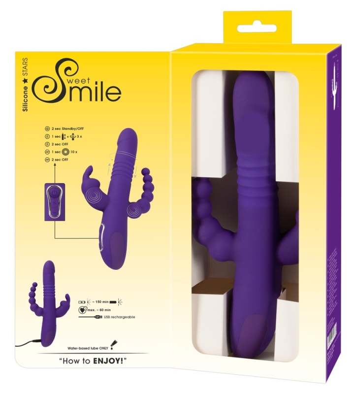 Der Thrusting Pearl Triple Vibrator von Sweet Smile ist ein raffinierter Stoßvibrator mit Klitoris-Stimulator im Häschendesign und Analvibrator im einfühlsamen Kugeldesign. 3 Motoren sorgen für ein intensives Stimulationsprogramm.