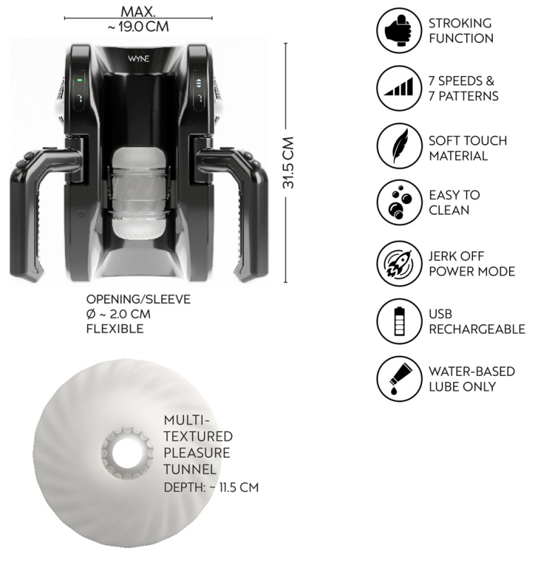 Power-Action mit Grip & Komfort! Leistungsstarker Masturbator 10 von WYNE, der den Penis in der sich Auf-und-Ab-bewegenden Stroker-Sleeve intensiv massiert und verwöhnt – über die gesamte Länge bis 28 cm. Die praktischen Griffe an den Seiten bieten dabei maximalen Nutzungskomfort und eine super einfache Handhabung. Vollautomatischer Komfort-Handjob ohne müde Hände!