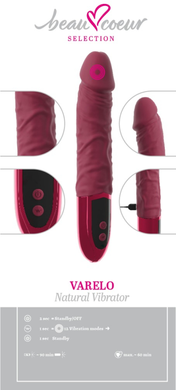 Ausfüllender Vibrator VARELO von beau cœur im naturalistischen Penislook und sinnlichem Rot in edlem Seidenmatt & Glanz. Mit ausgeformter Eichel und ausgeprägter Äderung für intensive Stimulationen. Vibriert besonders stark im Kopf für gezieltes Verwöhnen. Dabei liegt der Silikonvibrator gut in der Hand und gleitet mit seiner seidig-soften Textur wie von selbst – passt sich dem Körper optimal an und folgt jeder Bewegung.