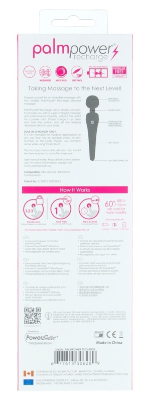 Für Komfort- und Intim-Massagen! Wiederaufladbarer Massagestab recharge von palmpower mit sehr flexiblem Massagekopf. Die beiden Vibrationsstufen sind bequem per Knopfdruck direkt am Toy steuerbar und sorgen für individuelle Massagelust von sanft bis intensiv. Sogar im/unter Wasser, da wasserdicht! Dabei liegt der Massagestab perfekt und leicht in der Hand und lässt sich problemlos führen.